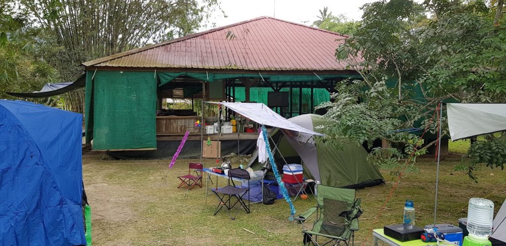 營地種了許多的竹, 在夜裡, 以為是下著雨, 原來是露水從竹叶滴下.夜晚也很涼爽, 還有一個大中亭可以使用. 中午幫時可以在休息. 營地離小溪不會太遠, 小朋友也可以在那玩樂.