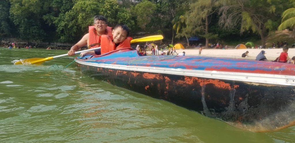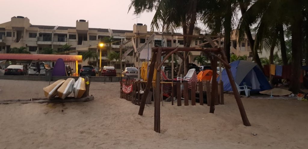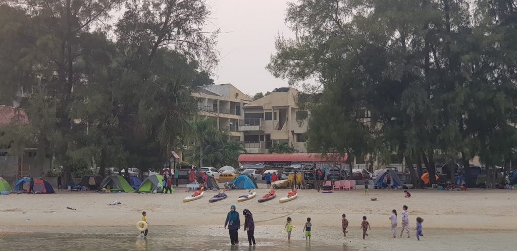 Blue Lagoon也是Port Dickson出名的一個海灘, 很多人到那野餐和露營, 只是這個露營的地方全都是沙地. 而且露營的地方也不是很大. 但海水很淺, 非常適合小朋友在那玩樂. 我們還租了他們的船來划.而且可以划到很遠, 水也不會太深.夕阳也很美麗. 想要輕鬆的露營, 也許可以選擇這個地方, 晚上就到外面的餐館用食. 不過厠所不是很大, 所以需要按排使用.